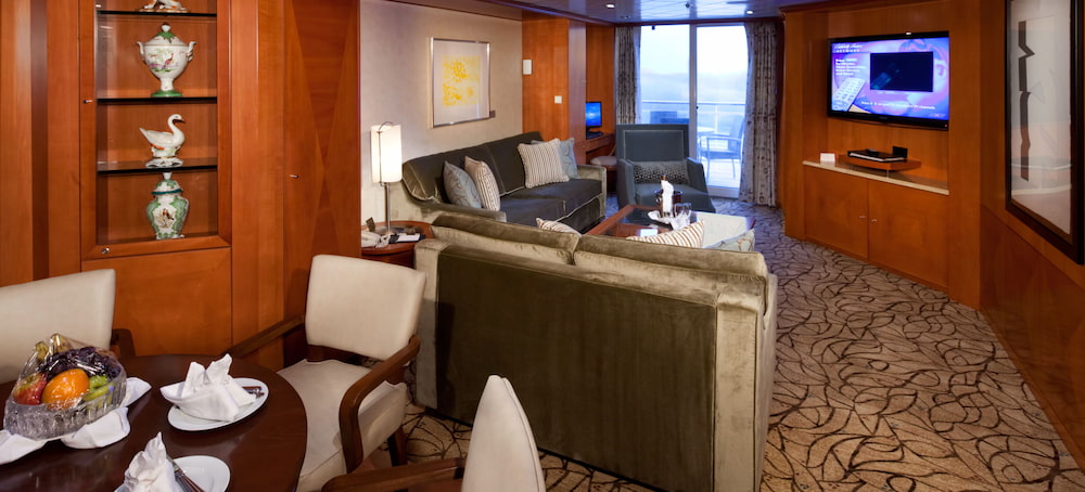 Please note that not all amenities available on the Celebrity Silhouette are included in this charter. Drinks and Wi-Fi are not included in the base price of a cabin on StarVista LIVE cruises. Stateroom images and features are samples only. Actual furniture, fixtures, colors and configurations may vary. All measurements are approximate. Lastly, the configuration of accessible staterooms may vary from the non-accessible stateroom shown here.